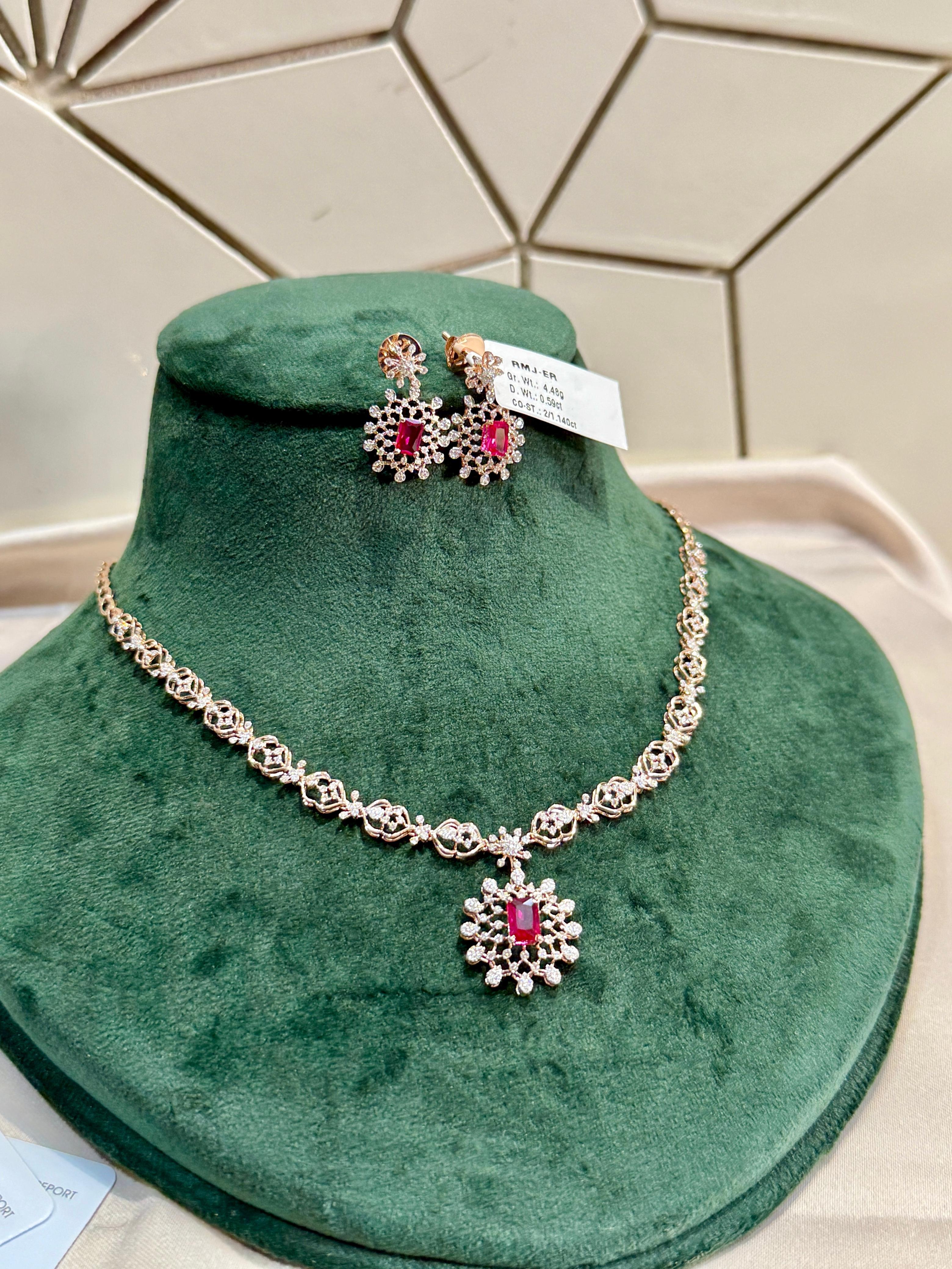 Modern Minimalist Diamond Necklace and Earrings